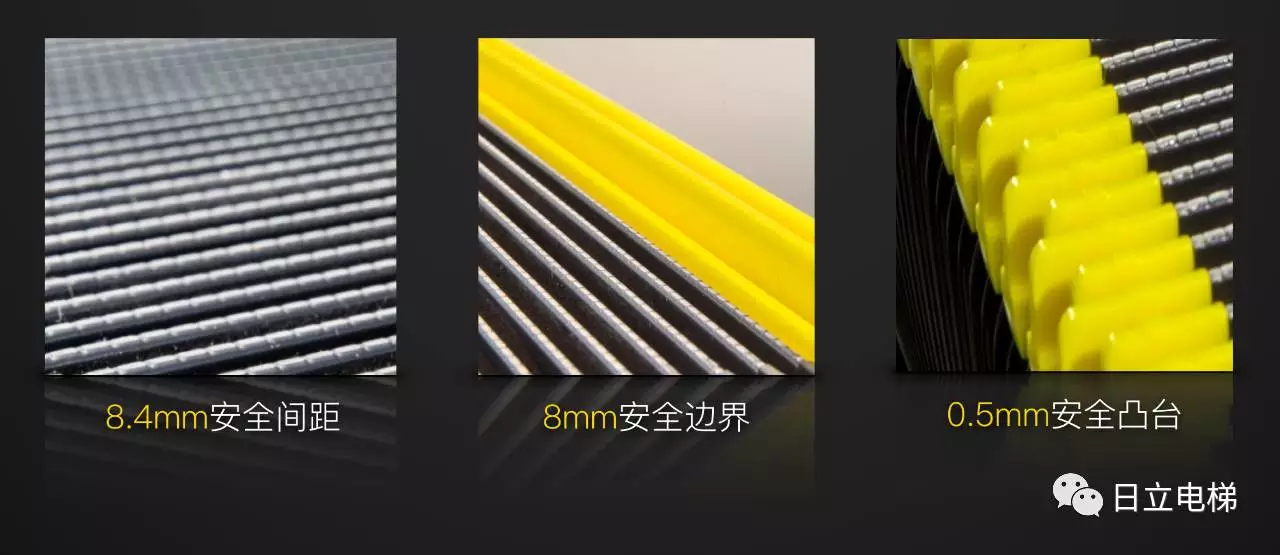 8.4mm安全齒距和8mm安全邊界的特別設計,避免乘客被夾入扶梯內。
