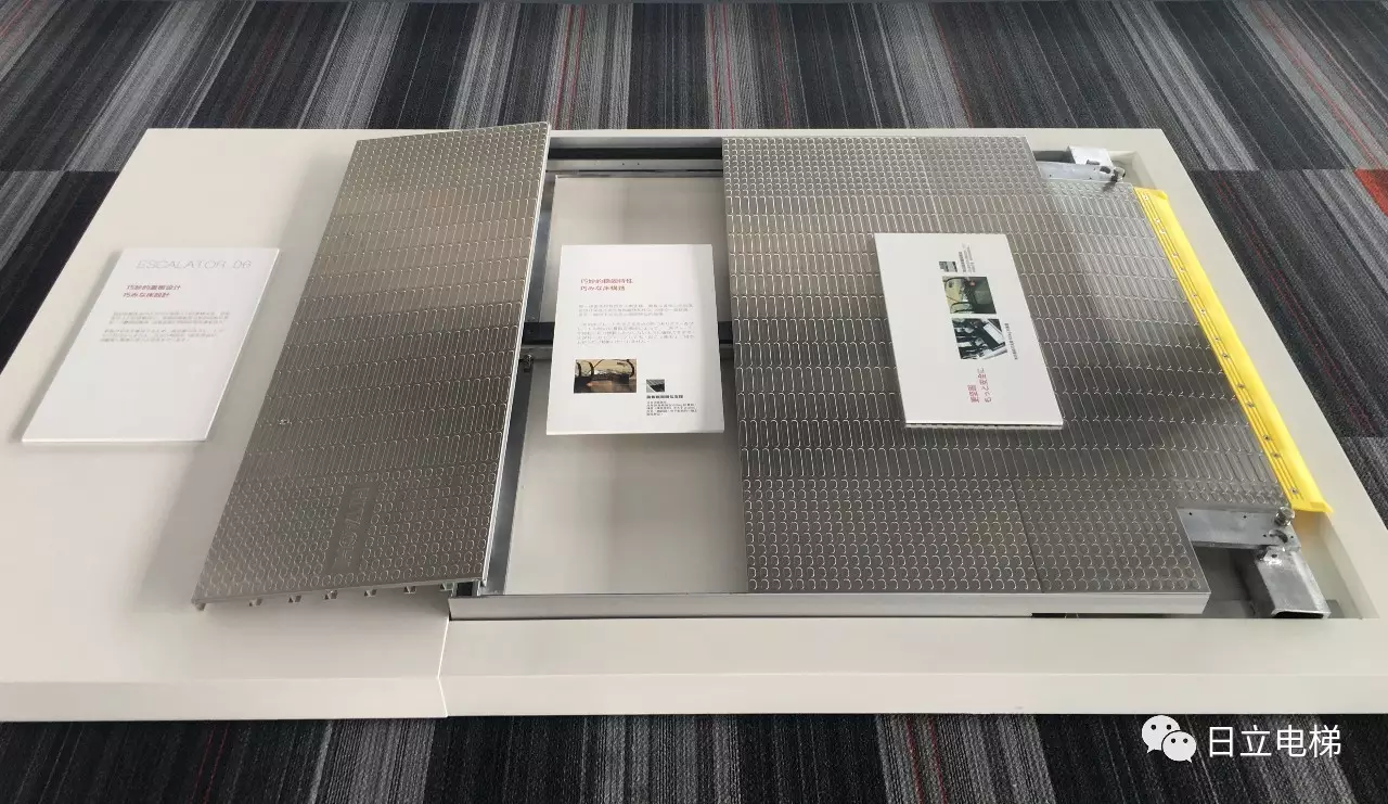 日立特有的矩型蓋板設計,能夠杜絕樓層板脫落或者側翻的事故發(fā)生。每一塊蓋板均有四點(diǎn)平衡支撐和限位設計,即使在一端踩跳,另外一端也不會(huì )出現上翹或者位移的現象。